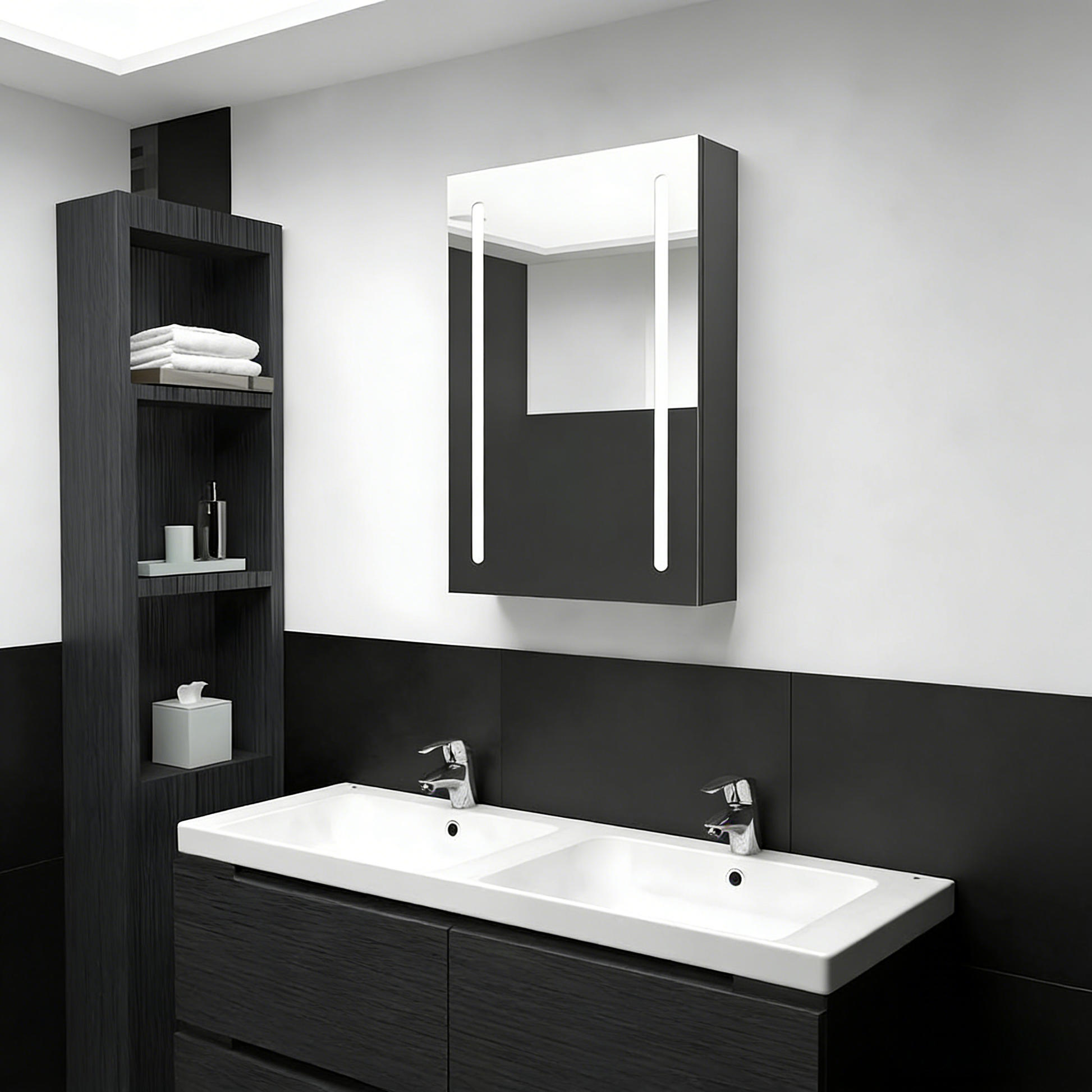 Armoire de salle de bain à miroir LED gris 50x13x70 cm OYJC31585