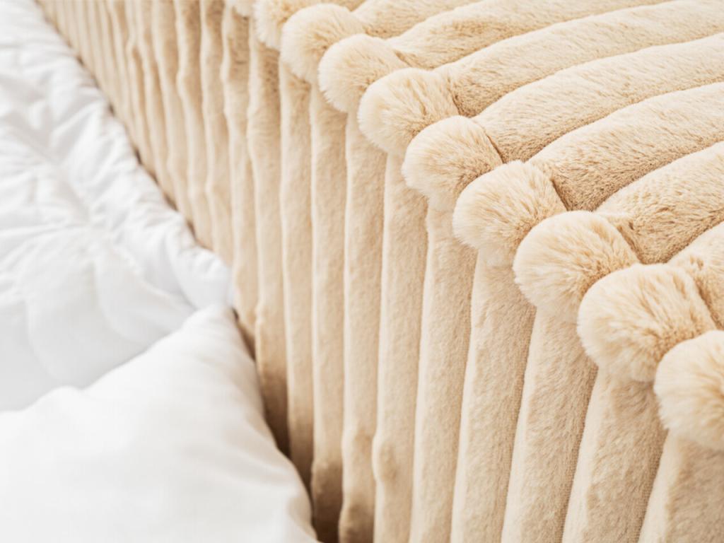 Lit rembourré avec rangement - 160x200 - lit double - côtelé - beige - Domopure SCST93065