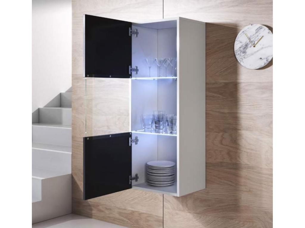 Meuble tv mural pour Salon Salle à manger en Blanc et Noir avec LED 160x40x166cm Domopure 6 GLSM48551